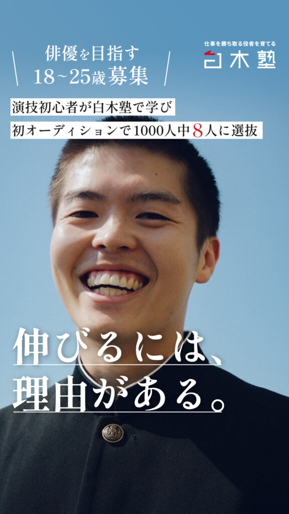 トップの俳優を本気で目指す!俳優志望18-25歳募集 白木塾三期生募集!
